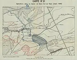 - ^ Verdun (Rive Droite) 1915, in Campagne 1914–1918 - Historique des 39e et 239e Régiments d’Artillerie de Campagne. Gedruckt von J. Coubé et Fils, Nancy, 1934 und Extrait de la carte au 80.000e du Service Géographique de l'Armée.
