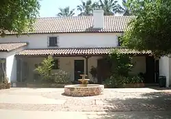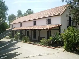 Located on Sepulveda Boulevard in Mission Hills, the original part of the Romulo Pico Adobe was built in 1834 by Tongva-Fernandeño, Tataviam-Fernandeño, and Chumash-Ventuaño Native Americans (Indians) from the San Fernando Mission.[4] The original purpose of the structure is unknown, though the adobe was located in the center of the Mission's orchards and surrounding vineyards.