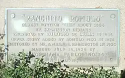 - ^ a b c "Rómulo Pico Adobe (Ranchito Rómulo)". Stateof California Office of Historic Preservation. Archived from the original on October 27, 2008.