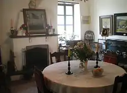 When I took over the Romulo Pico house about 1930 the walls were still standing, but the roof, stairway, doors, windows, and many of the window and door frames were missing; also most of the cross beams and most of the floor. I did not 'rebuild' the walls, but I did replace three or four layers of adobe blocks around the top of the walls, the originals having been damaged by the weather. I put in new timbers, new floors, and a new staircase. I regard the main building as having been built in the Mission period - probably early 1830s, the wings possibly added by the Picos. ... The only changes I made were to build an addition to the north wing of the house; put a fireplace in the living room (only the dining room had one originally), rebuild the patio walls and build a garage.[5]