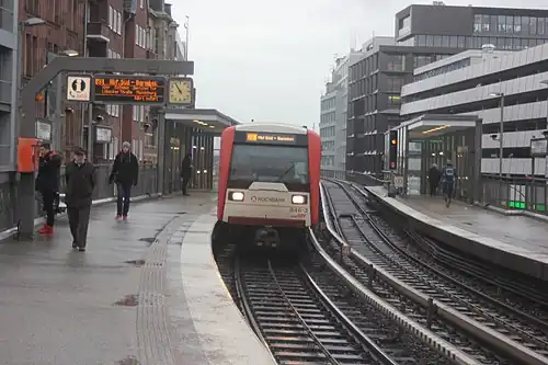 Rödingsmarkt is an elevated metro station on the Hamburg U-Bahn line U3. It was opened in 1912[2] and is located in the borough of Hamburg-Mitte in Hamburg, Germany.