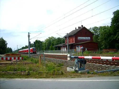 Rückersdorf (German: Bahnhof Rückersdorf) is a railway station in the town of Rückersdorf, Brandenburg, Germany. The station lies of the Berlin–Dresden railway, and the train services are operated by Deutsche Bahn.