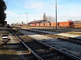 The Zaprešić–Čakovec railway, officially designated as the R201 railway, is a 100.6-kilometre (62.5 mi) partially electrified single-tracked railway line in northwest Croatia that connects the towns of Zaprešić and Čakovec, opened in 1886[1] in former Kingdom of Croatia-Slavonia.[2][maps 1][3] The section between Zaprešić and Zabok is also a branch part of Pan-European Corridor X. Most of the corridor passes through Hrvatsko Zagorje region, connecting the largest part of Međimurje and Hrvatsko Zagorje with Zagreb, spanning through four counties. The line separates at the Zaprešić station from the M101 railway. It is used for passenger (regional) and freight traffic.