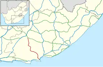 1. ^ a b c d e Falkner, John (May 2012). South African Numbered Route Description and Destination Analysis (Report). National Department of Transport. p. 60. Archived from the original on 6 June 2014. Retrieved 13 August 2014.
