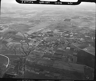 An aerial photograph taken in 1948, shows the runway of RAF Beit Daras in the lower left corner.