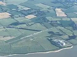 The central area of the current airfield was first laid down before WW2 as a grass-surfaced landing ground for the nearby Dengie firing ranges off the coast before being rebuilt from 1940 onwards as an enlarged RAF station with concrete runways, hangars and ancillary buildings.[2] The station is unique as it was the only fighter station where the Fog Investigation and Dispersal Operation (FIDO) was used.[3] The USAAF took aerial photographs in 1944 which were published in 2023.[4]