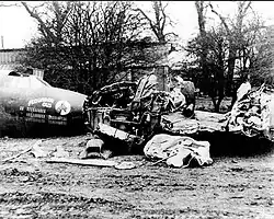 Wreckage of B-26 Marauder 'Flounder Gus' after crash landing on RAF Coolham on 15 February 1944.
