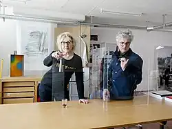 RELAX is a collective co-founded by Marie-Antoinette Chiarenza (born 1957 in Tunis, Tunisia), artist and since 2010 lecturer at the Geneva University of Art and Design,[2] and Daniel Hauser (born 1959 in Bern, Switzerland), artist and since 2000 head of the art studies programme at the F+F School of Art and Design.[3] In the summer of 2013, Chiarenza and Hauser were resident faculty members at the Skowhegan School of Painting and Sculpture.
