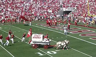- They have had to apologize to head coach Bob Stoops twice: once for knocking him down during a pre-game run down the field at the Independence Bowl, and another time for patting him on the butt with their paddles, also during a pre-game run down the field.[5]
