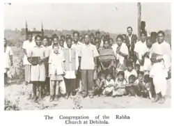 In the period 1930–32, Christianity was introduced to the tribes and two young Rabhas accepted Christianity.[1] The number of Christian families increased to around 20 families and a church established in Kalbhandari.