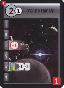 The third expansion adds still more cards, and goals, as well as a new mechanic called galactic prestige. Each round the player(s) with the most prestige earn an additional victory point and possibly a card. Each prestige is worth one victory point at the end of the game, and many of the new cards allow prestige to be spent (for victory points, cards, or other effects). Additionally, a new "once-per-game" action is introduced that allows the user to search the deck for a card meeting a specific stated requirement, or to enhance the bonus the user earns in a round (at the cost of one prestige).[19] The set further extends takeover options: the Interstellar Casus Belli development can allow attacks against anyone, and the Imperium Planet Buster can destroy enemy worlds outright.[14]