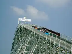 Racer 75 is a wooden racing roller coaster at Kings Dominion in Doswell, Virginia. Designed by John C. Allen, the ride opened with the park in 1975 as Rebel Yell.[1][2] It features a similar track layout to The Racer (1972) at Kings Island and the now-defunct Thunder Road at Carowinds (1976). In 2018, Rebel Yell was renamed Racer 75 to avoid any connection to the Confederacy, to reflect its racing coaster design and opening date, and as a subtle nod to the American Coaster Enthusiasts (ACE) organization that was founded in 1978.[3][4]