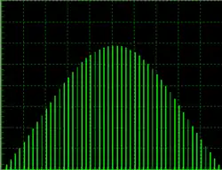 The diagram below shows the characteristics of the transmitted signal in the time domain. Note that in this and in all the diagrams within this article, the x axis is exaggerated to make the explanation clearer.