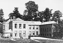 With the Bulteel's family fortune lost, Radford was sold in 1917 by order of the Trustee in Bankruptcy.[44] The sales particulars of the estate listed Radford House; Hooe Manor (also Belle Vue); Thorn Cottage (in 1851[45] the seat of Christopher Harris (born 1790), banker, a partner in the Naval Bank); 1 and 2 Furzehatt Villas; farms Higher Goosewell, Lower Goosewell, Barn Farm, Radford Farm; and unsold parts of Buenos Ayres [sic] Building Estate; a total of 602 acres.[44] The purchaser was William Mitchell (1861–1930)[46] The longest-surviving of the sons of Thomas Bulteel of Radford was Hillersden Bulteel (1867-1950), a civil engineer. The Hillersdon family was an ancient gentry family formerly seated at the manor of Membland, later a Bulteel seat.