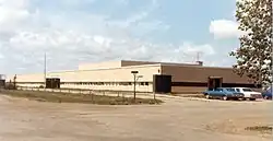 The Radville Public School, a traditional 3-storey cube-shaped red brick building, burned to the ground on January 16, 1977.[2][3] A mimeograph machine with its alcohol-based image transfer fluid created an explosion in the staff office on the second floor. Picture windows across the street were cracked as a result of the explosion. The new Radville Elementary School opened a few years later. In the interim, the students were sent to classrooms in the high school, and the younger students were sent to the Catholic school.