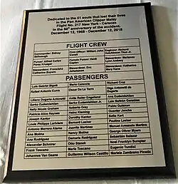 - ^ "Venezolanos recordaron 50 años de la tragedia del vuelo NY - Caracas". 28 December 2018.