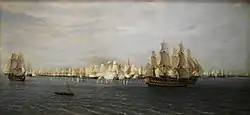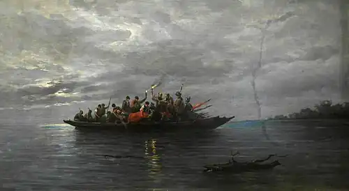 He participated in every National Exhibition of Fine Arts after 1864, except for 1892, owing to his involvement in the celebrations for the four-hundredth anniversary of the "Discovery of America", which included an elaborate scale model of the Santa María being made as a gift to the United States.[2] As a result, he was awarded a second-class Cross of Naval Merit and the title of Commander in the Order of Charles III.