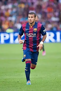 Rafinha scored his first goal for the Blaugrana on 3 December 2014, concluding a 4–0 away win against Huesca in the first leg of the Spanish Cup's last 32 (12–1 aggregate).[17] The following 1 February, he recorded his first goal for the team in the domestic league, part of a 3–2 home defeat of Villarreal.[18] They went on to win the treble, with the player being an unused substitute in the domestic and European finals.