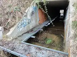 Structures already built into the railway infrastructure such as pipe culverts, box culverts, small access roads and bridges to cross rivers or valleys can offer safe passage underneath the railway for wildlife.[13] Culverts can be adapted during their construction or afterwards to better allow wildlife to use them as crossing structures by including dry ledges, modifying the habitat at the entrances, avoiding slopes or steps, etc.[13] Modifying culverts is likely the most economical solution to reduce the barrier effect.[14] Wildlife underpasses and overpasses are also good ways to reduce the barrier effect of railways, but they are associated with a much higher cost of construction.[13] These types of structures mainly help land animals, with birds and bats only being helped by extremely large structures.[13] The rock between two railway sleepers can be excavated to allow small mammals and herpetofauna who are unable to physically cross rails to do so.[3]