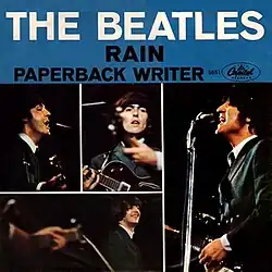 "Rain" is a song by the English rock band the Beatles, released on 30 May 1966 as the B-side of their "Paperback Writer" single. Both songs were recorded during the sessions for Revolver, although neither appear on that album. "Rain" was written by John Lennon and credited to the Lennon–McCartney partnership. He described it as being "about people moaning about the weather all the time".[4]
