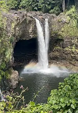 Rainbow Falls, or Waiānuenue, is a waterfall located in Hilo, Hawaii. It is 80 ft (24 m) tall and almost 100 ft (30 m) in diameter. The falls are part of the Hawai'i State Parks. There is no fee to see the falls.
