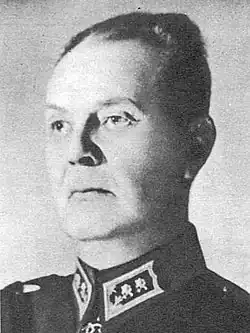 Raising the Flag on the Three-Country Cairn[Note 1] is a historic photograph taken on 27 April 1945, which was the last day of the Second World War in Finland. It depicts a Finnish Army patrol of Battle Group Loimu, Infantry Regiment 1 (Finnish: taisteluosasto Loimu, jalkaväkirykmentti 1), raising the Finnish war flag on the three-country cairn between Norway, Sweden, and Finland. As the cairn marked the westernmost point on the Finnish mainland, this symbolized that the last German troops were gone from Finland. The photograph was taken by the commander of Infantry Regiment 1, Colonel Väinö Oinonen (alternatively V. J. Oinonen). It became a widely circulated symbol of the end of World War II in Finland.