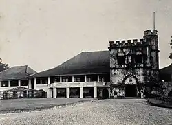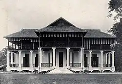 The first doctor was appointed shortly after James Brooke was proclaimed Rajah.[156] Kuching Hospital services existed in the 1800s but no records are available. The earliest record of the Kuching Hospital (now Sarawak General Hospital) was available in 1910 which shows it admitted 920 patients that year.[157] In 1925, a leprosy settlement was constructed in Kuching. Rajah Charles Brooke Memorial Hospital was also constructed to treat leprosy patients.[158] In 1931, a facility to treat mental illness was constructed beside the Kuching Hospital.[158] In Sibu, the construction of Lau King Howe Hospital (now Lau King Howe Hospital Memorial Museum) was completed in 1936.[159] In 1935, there were six doctors serving the needs of the senior government servants. The State Health Office (known as Medical Headquarters) was located at the Kuching Pavilion building from 1909 to 1947. There was only one assistant dental officer before the Japanese occupation. Charles Vyner Brooke had been attempting to persuade doctors from the Straits Settlements to serve in Sarawak but the response had been cold.[156] The medical service continued under Japanese occupation. There are few records regarding the development of dentistry in the 1900s. Several accounts from elderly people stated that there were traditional healers and roadside tooth-pullers performing palliative treatments at that time. The first government dentist was appointed in July 1925 at Kuching General Hospital. In 1932, the "Sarawak Government Registration of Dentist Ordinance" was introduced. A total of 15 dentists were registered before the Japanese occupation.[160]