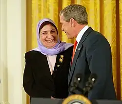 ![]() President George W. Bush greets Dr. Raja Habib al-Khuzaai | |