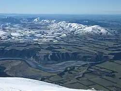The Rakaia River is in the Canterbury Plains in New Zealand's South Island.[1] The Rakaia River is one of the largest braided rivers in New Zealand.[2] The Rakaia River has a mean flow of 203 cubic metres per second (7,200 cu ft/s) and a mean annual seven-day low flow of 87 m3/s (3,100 cu ft/s).[3] In the 1850s, European settlers named it the Cholmondeley River, but this name lapsed into disuse.[4] The name Rakaia comes from Māori "Ō Rakaia", meaning the place where people were arranged by ranks.[5][6]