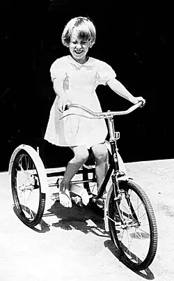 The Winkie was a rear chain driven children's tricycle manufactured in England by Raleigh Bicycles between 1950 and 1970.[1][2][3] Raleigh marketed the tricycle to children by having them automatically join an owners club called The Circle of Silver Knights which taught traffic safety while also acting as a way to sell tricycles. The construction is welded steel tube with steel wheels and a single speed driven by a chain attached to a solid rear axle.[4]
