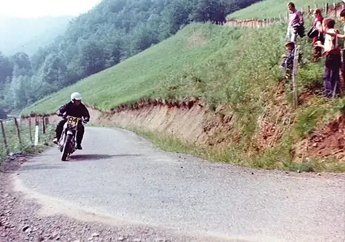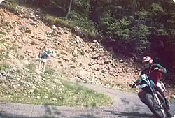 The Rallye des Pyrénées, also known as the Circuit des Pyrénées and formerly as the Pau-San Sebastián Rally,[1] was a two-day international motorcycle competition in late June set in the Pyrenees mountains of France and Spain, consisting of about 400 miles (640 km) of timed trials and hill-climbs.[2] The competition, started in 1951 by the Union Motorcycliste Paloise,[3] attracted a high proportion of competitors from European police and military units.[1] French motorcycle periodical, Moto Revue, stated, "The Circuit des Pyrénées confronts the riders with many hazards and to cross the finish line is itself a fine reward",[4] whilst motorcycle writer Cook Neilson described the competition as "the ultimate remaining Racer Road experience".[3] British magazine, Motor Cycle Sport called the 1978 event, "an anachronism and dangerous" yet "one of those phenomenal events that should not really be allowed but is".[5]