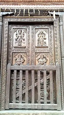 The Ram Mandir is one of the oldest Hindu temples in the city of Janakpur. In the 17th century, it was built by Chaturbhuj Giri.[2] It was later rebuilt in 1782 by the Gorkhali General, Amar Singh Thapa. The architecture of the temple is in the traditional Nepalese pagoda style.[3] The temple is located directly in front of the sacred Dhanushsagar Lake.[4] Within the Ram Mandir complex, there is also a Shaktipeetha known as Rajdevi Mandir.[5]