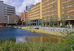 Ramboll Studio Dreiseitl are responsible for the waterscape on Potsdamer Platz in Berlin.[7] Water was central to Renzo Piano and Christoph Kohlbecker's original design, but it was Ramboll Studio Dreiseitl that conceived and developed the scheme for rainwater recycling and created the many opportunities for public engagement with water.[8] The scheme is one of the largest urban rainwater harvesting projects in the world[9] and in 2011, it became one of the first city quarters to be retrospectively awarded the DGNB Certificate of the German Sustainable Building Council (DGNB) in silver.