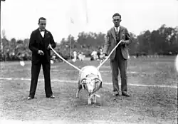 The first appearance of Rameses was at a pep rally before the football game against Virginia Military Institute on November 8, 1924.[2][3] After the pep rally the ram was taken to "Emerson Field". Through three quarters the game was scoreless. Late in the fourth quarter Bunn Hackney was called out to attempt a field goal. Before stepping out on the field he rubbed Rameses' head. Just a few seconds later Hackney kicked a 30-yard field goal that eventually won the game for the Tar Heels; the final score was 3-0. Rameses has been a fixture on the sidelines at UNC football games ever since.[4] The current Rameses ram is under the care of the Hogan family of Chapel Hill.[3]