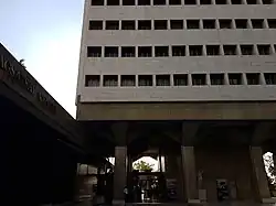 Ruben Payumo of the Alfredo Luz's architectural firm was the project manager for the Ramon Magsaysay Center[1] It is the first structure in the country to sport column-free structural concept. The design used pre-cast and pre-stressed beams like a tree rooted on the ground. The exterior of the building was designed to withstand the salty environment that surrounds the building. It was clad with travertine marble slabs embedded in the frame of the building.[2]