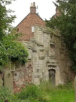 Rampton had an important manor in Norman times. Rampton Hall of the Stanhope and Babington families was built in the reign of Henry VIII and pulled down in 1720. The open fieIds and commons which comprised nearly half the parish was enclosed in 1843. There was a Wesleyan Methodist chapel in the village built in 1857. On the eastern edge of All Saints' churchyard is a mid-16th-century Tudor gateway which once led to Rampton Manor, and was the former home of the Eyre family. It is brick with terracotta panels and is a listed building ornamented with the armorial bearings of the Stanhope, Babington, and Eyre families.[7] The Eyre manor was demolished in the 20th century.[5]