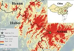 - ^ IUCN SSC Amphibian Specialist Group. (2021). "Rana dabieshanensis". IUCN Red List of Threatened Species. 2021: e.T145401992A149222864. doi:10.2305/IUCN.UK.2021-3.RLTS.T145401992A149222864.en.