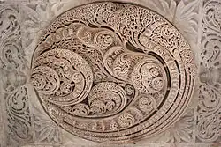 Chaturmukha temple is a 15th-century temple dedicated to Adinatha[18] built using white marble in the midst of a forest. The temple name is credited to its design of chaumukha— with four faces.[19][20] The construction of the temple and quadrupled image symbolise the Tirthankara's conquest of the four cardinal directions and hence the cosmos.[21][22] The temple is one of the largest Jain temples[3] and considered one of the five holiest Jain shrines in India and part of Gorwad Panch Tirth.[6][23] The architecture and stone carvings of the temple are based on the Ancient Mirpur Jain Temple at Mirpur in Rajasthan.[24]
