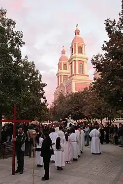 Rancagua (Spanish pronunciation: [raŋˈkaɣwa]) is a city and commune in central Chile and part of the Rancagua conurbation. It is the capital of the Cachapoal Province and of the O'Higgins Region, located 87 km (54 mi) south of the national capital of Santiago.
