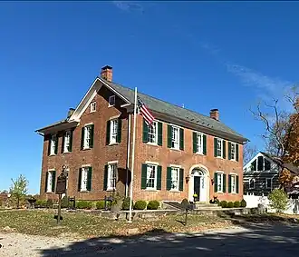 Settled in 1801,[2]: 596  the community of New Reading was platted in 1805, before any other community in Perry County; for much of its early history, it was better known as "Overmyertown" in honor of its founder, Peter Overmyer.[2]: 281  When the county was established in 1817, New Reading contended for the title of county seat,[3] and although it failed to obtain this distinction, it remained prosperous throughout the nineteenth century.[2]: 281  Into this flourishing community moved Randolph Mitchell two years after the failed bid for county seat. Having paid the then-huge sum of $100 to buy seven lots in the village, he commenced the construction of a grand house, which was finished in 1828.[4] Before long, Mitchell had gained high standing in the community; he was a prominent member of the village's Methodist church, and later generations remembered him as one of the leading merchants of old New Reading.[2]: 297