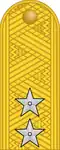 | Hadseregtábornok | Vezérezredes | Altábornagy | Vezérőrnagy | Ezredes | Alezredes | Őrnagy | Százados | Főhadnagy | Hadnagy | Alhadnagy | ||||||||||||||