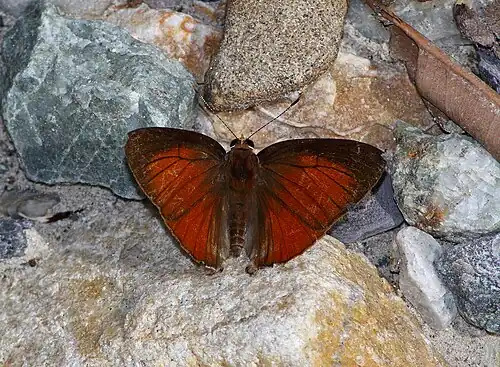 Rapala pheretima, the copper flash,[1] is a species of lycaenid or gossamer-winged butterfly found in the Indomalayan realm.
