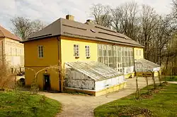 The former watering-place for cattle was lent the form of a lake and in 1830 a greenhouse. The so-called “pineapple house”, was built by the lower edge of the park. It stands on the site of the original Old Bleaching Ground where in reality Barunka Panklová spent her early childhood. The later flat of the Pankl family is situated behind the greenhouse, on the ground-floor of the former barn.