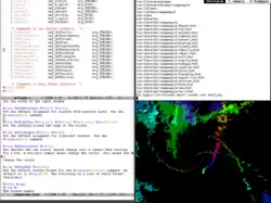 ratpoison relies on key chords similar to Emacs to control window management, with all window interactions being done through shortcuts.[4] Each window occupies an entire frame and cannot overlap. Windows can be split either horizontally or vertically. Multiple workspaces and session management are supported.[9] An application menu can be used for navigation to programs. Configuration is controlled via a config file.[10][11]