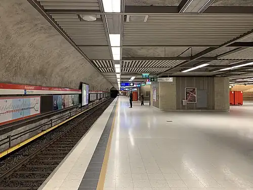 The Central Railway Station metro station (Finnish: Rautatientorin metroasema, Swedish: Järnvägstorgets metrostation; lit. "Railway Square" in both languages) is a station on the Helsinki Metro. The entrance is located in the Asematunneli main hall, which has an exit to the Helsinki Central Railway Station. It is among the only Helsinki Metro stations whose names are announced in English, in addition to Finnish and Swedish.