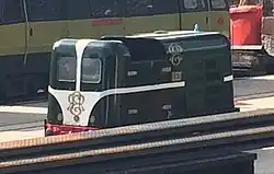 In December 1929, a 4 ft 8+1⁄2 in (1,435 mm) standard gauge 0-6-0 diesel locomotive was obtained to work the Ravenglass-Murthwaite section. It was built by Kerr Stuart (works number 4421) and had a six-cylinder, 90 horsepower (67 kW), McLaren-Benz engine. Transmission was mechanical and final drive was by roller chains. In 1955 it was sold, through a dealer, to the National Coal Board for use at Wingate Grange Colliery, Durham. A new Dorman engine of 90 horsepower (67 kW) was fitted in 1960.[13] It is now preserved at the Foxfield Light Railway,[14] restored to original external condition, and was displayed at Ravenglass in the summer of 2000.