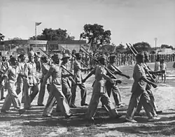 The Razakars were a paramilitary wing of the Majlis-e-Ittehadul Muslimeen (MIM; transl. Council for Muslim Unity), an Islamic political party in the Hyderabad princely state of British India. Formed in 1938 by MIM leader Bahadur Yar Jung, the organisation expanded considerably during the leadership of Qasim Razvi around the time of the partition of India.[1][2] Its primary objective was to maintain the rule of the Muslim Nizams of Hyderabad and prevent the accession of Hyderabad to India.[3]