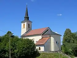 The local church is dedicated to Saint Anthony the Hermit and belongs to the Parish of Šentvid pri Stični. It was originally an early 16th-century building, but was almost entirely rebuilt in the 19th century.[4]