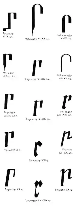 - ^ "ր տառը բացատրություն, r tary bacatrutyun, ր տառը հոմանիշ, ր տառը ռուսերեն թարգմանություն, ր տառը հականիշ, ր տառը անգլերեն թարգմանություն, ր տառը դարձվածքներ". bararanonline.com. Retrieved 2025-04-12.