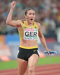 Rebekka Haase (born 2 January 1993) is a German athlete specialising in the sprinting events.[1] She won three gold medals at the 2015 European U23 Championships,[2] a gold medal at the 2017 IAAF World Relays,[3] and became European Champion with the German 4 × 100 metres relay team in 2022.[4]